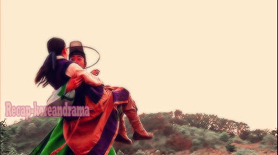 Tae Do yang melihat hal tersebut panik. Ia sangat panik, namun engga ada yang bisa ia lakukan. Sampai pada akhirnya, Jung Yi terlempar dari kuda yang tengah ia tunggangi. Hampir saja seluruh tubuhnya remuk, kalau saja Prince Kwang Hee engga datang. Prince Kwang Hee tiba-tiba datang, dan menangkap Jung Yi yang terlempar dari kuda. Jung Yi jatuh tempat di atas lindungan tangan Prince Kwang Hee.