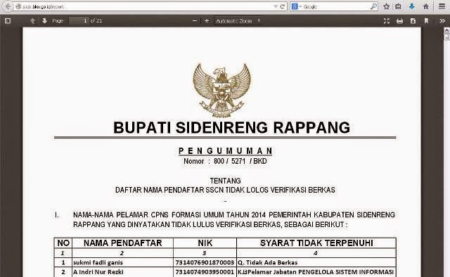 BLOGGER SIDRAP - Pengumuman tes berkas CPNS untuk Kab.Sidenreng Rappang telah diumumkan dan sekitar 800 pelamar dinyatakan "Tidak Lulus Verifikasi" Tanpa berlama-lama berikut cara lengkapnya :